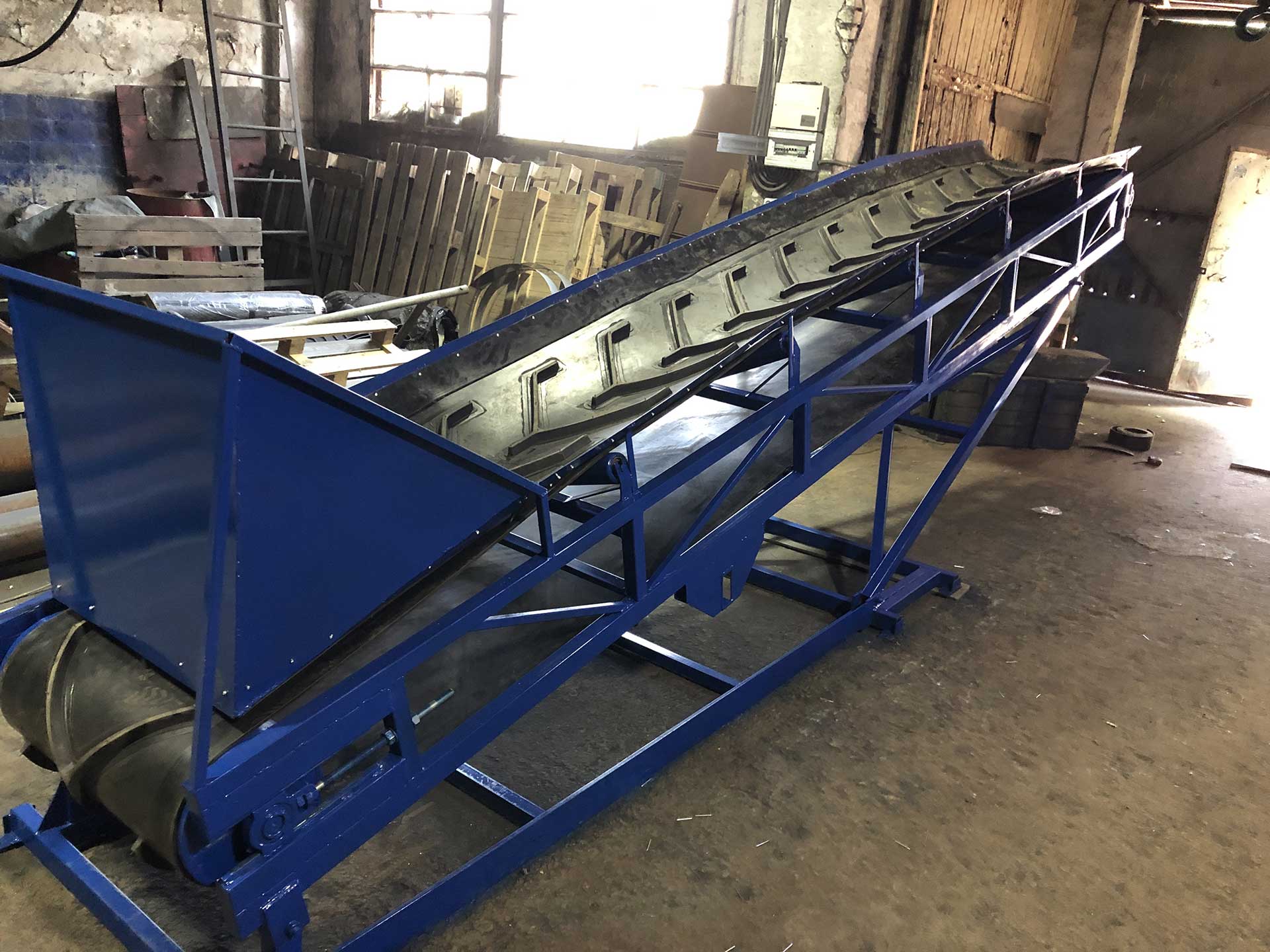 The conveyor belt is made of a profile pipe 60 × 40, 40 × 40 mm and reinforced with a profile pipe 20 × 20 mm. The type of rollers varies from 42-102 mm in diameter, depending on the type of material being transported. The gear motor and type of conveyor belt can also be changed.